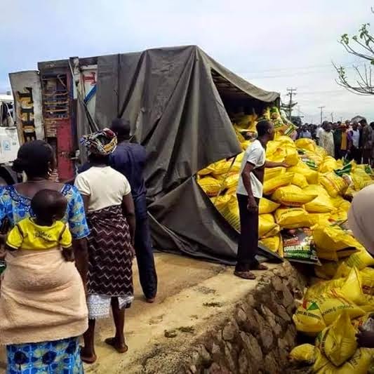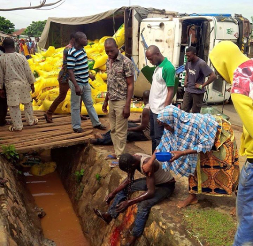 Entertainment Truck conveying Goodluck/Sambo bags of rice involved in an accident. (Photos) loladevilleMarch 27, 2015, 8:56 pmMarch 27, 2015 0 432 A truck carrying bags of campaign rice to President Goodluck Jonathan/ PDP supporters was involved in an accident yesterday at Osogbo, Osun State. Previous ArticleHow To Beat Your Wife | By: Charly BoyNext Article#NigeriaDecides: Google search words on GMB and GEJ