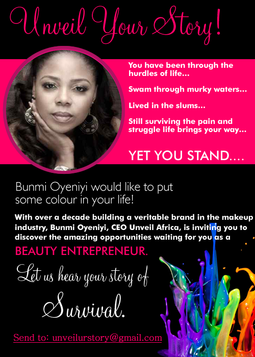Unveil Africa; a foremost beauty brand in Nigeria has spent the last decade building a veritable brand in makeup and would like to set you up as a beauty entrepreneur! Send your true story, not more than 1000 words, on your struggle through life and your triumph in the face of adversity…and become Nigeria’s next successful Beauty Entrepreneur!